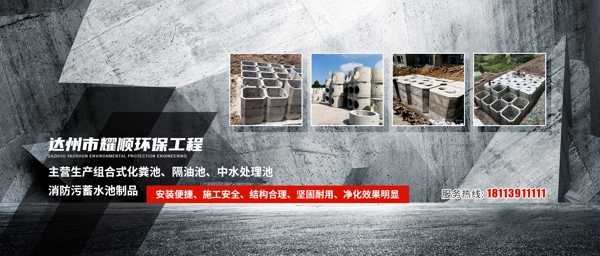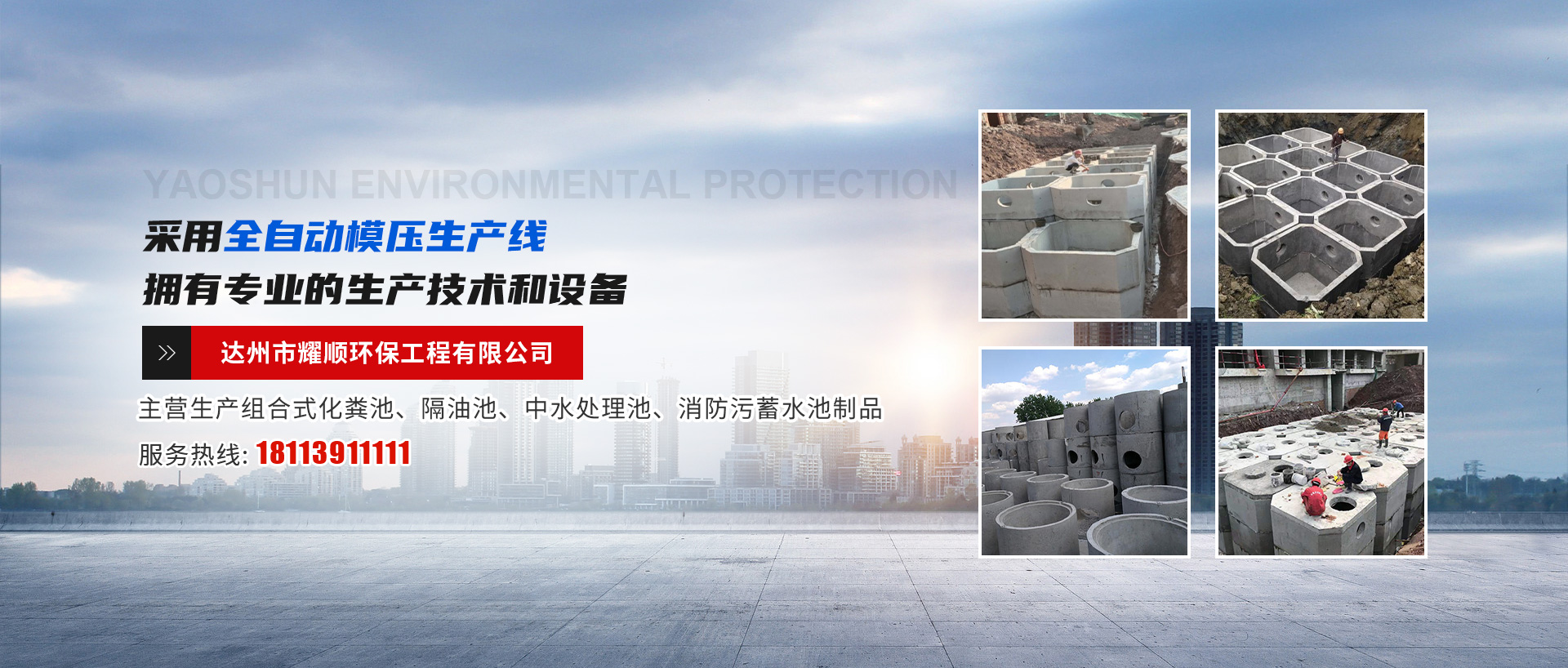 達(dá)州市耀順環(huán)保工程有限公司位于四川東北部、達(dá)州市中部通川區(qū)。本公司采用全自動模壓生產(chǎn)線,擁有專業(yè)的生產(chǎn)技術(shù)和設(shè)備,同時擁有一支專業(yè)的施工隊(duì)伍。本公司堅(jiān)持質(zhì)量第一、互惠發(fā)展,讓您的居住環(huán)境更美、更舒適,是我們工人的宗旨。本公司愿與廣大建筑同仁一道,為美化城市作出貢獻(xiàn)。我公司現(xiàn)生產(chǎn)組合式化糞池、隔油池、中水處理池、消防污蓄水池制品。我們的產(chǎn)品在建筑工程中不斷接受檢驗(yàn),具有安裝便捷、施工安全、用時短、結(jié)構(gòu)合理、堅(jiān)固耐用、抗?jié)B性能好、凈化效果明顯、經(jīng)濟(jì)合理的優(yōu)特點(diǎn)。...